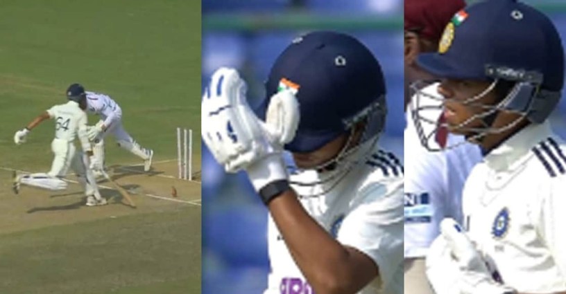 ജയ്ഡൻ സീൽസ് എറിഞ്ഞ പന്തിൽ അതിവേഗ സിംഗിളിനായി ഓടിയ ജയ്സ്വാളിനെ മറുവശത്തുണ്ടായിരുന്ന ക്യാപ്റ്റൻ ശുഭ്മാൻ ഗിൽ തിരിച്ചയച്ചു. പിച്ചിന്റെ പകുതി വരെയെത്തിയ ജയ്സ്വാൾ തിരിഞ്ഞോടിയെങ്കിലും ക്രീസിലെത്തും മുൻപ് ചന്ദ്രപോളിന്റെ ത്രോയിൽ കീപ്പർ ടെവിൻ ഇംലാച്, ജയ്സ്വാളിനെ പുറത്താക്കുകയായിരുന്നു. ഇതോടെ നിരാശനായ ജയ്സ്വാൾ, ഗില്ലിനോട് പരിഭവം പ്രകടിപ്പിക്കുകയും ഡ്രസിങ് റൂമിലേക്കു മടങ്ങുകയും ചെയ്തു. വിശ്വസിക്കാനാകാതെ ഗില്ലും തലയിൽ കൈവച്ചു. ഇന്നു രണ്ടു റൺസ് മാത്രമാണ് ജയ്സ്വാളിനു കൂട്ടിച്ചേർക്കാനായത്.