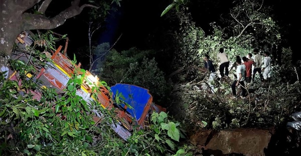 “100 അടി താഴ്ചയിലേക്ക് ലോറി വീണു; ഡ്രൈവർക്ക് ദാരുണാന്ത്യം, സഹായി ചാടി രക്ഷപെട്ടു .”
