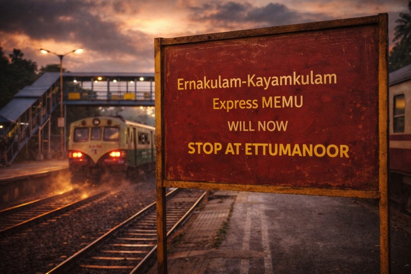 കോട്ടയം : എറണാകുളം ജങ്ഷനിൽ നിന്നും കായംകുളം വരെ സർവീസ് നടത്തുന്ന 16309/16310 എക്സ്പ്രസ് മെമു ട്രെയിന് പുതിയ സ്റ്റോപ്പ് അനുവദിച്ചു. കോട്ടയം ജില്ലയിലെ ഏറ്റുമാനൂരിൽ എറണാകുളം-കായംകുളം എക്സ്പ്രസ് മെമു നിർത്തുമെന്ന് ദക്ഷിണ റെയിൽവെ അറിയിച്ചു. നേരത്തെ എറണാകുളം ജങ്ഷനും കായംകുളം ജങ്ഷൻ റെയിൽവെ സ്റ്റേഷനുകൾക്കിടിയിൽ എട്ട് സ്റ്റോപ്പുകൾ മാത്രമായിരുന്നു ഉണ്ടായിരുന്നത്. അതിപ്പോൾ ഒമ്പതായി വർധിച്ചു.