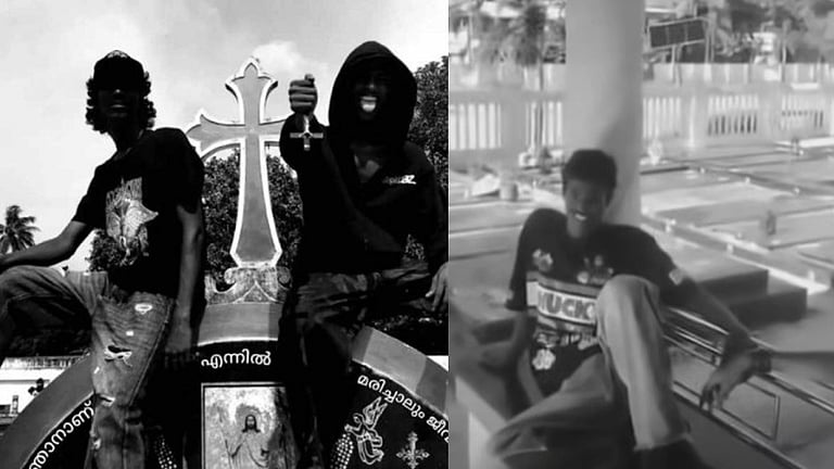 സംഭവത്തിന്റെ സിസിടിവി ദൃശ്യങ്ങളും യുവാക്കളുടെ റീൽസും പുറത്തുവന്നിട്ടുണ്ട്. കറുത്ത വസ്ത്രങ്ങൾ ധരിച്ച് കുരിശ് തലകീഴായി പിടിച്ചാണ് റീൽ ചിത്രീകരിച്ചത്. റീൽസിലൂടെയും പള്ളി സെമിത്തേരിയിലെ സിസിടിവി ദൃശ്യങ്ങളിലൂടെയും യുവാക്കളെ തിരിച്ചറിഞ്ഞിട്ടുണ്ട്. പൂന്തോപ്പ് സമീപ പ്രദേശത്തുള്ള യുവാക്കാളാണെന്നാണ് പൊലീസ് നിഗമനം.