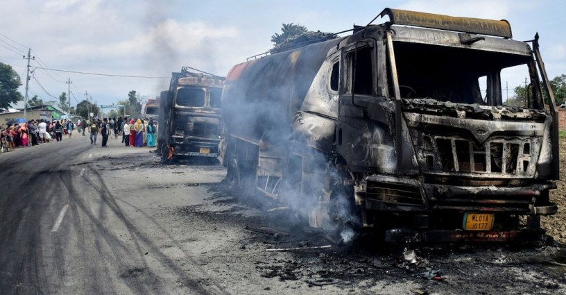കൊൽക്കത്ത : മണിപ്പുരിലെ ബിഷ്ണുപുർ ജില്ലയിലെ മൊയ്രാങ്ങിൽ വീടിനു നേരെയുണ്ടായ ബോംബ് ആക്രമണത്തിൽ പിഞ്ചുകുഞ്ഞ് ഉൾപ്പെടെ 2 കുട്ടികൾ കൊല്ലപ്പെട്ടു. തുടർന്ന് പൊട്ടിപ്പുറപ്പെട്ട കലാപം അടിച്ചമർത്താനായി സിആർപിഎഫ് നടത്തിയ വെടിവയ്പിൽ 2 പേർ കൊല്ലപ്പെട്ടു. 3 പേർക്ക് ഗുരുതരപരുക്കുണ്ട്. ബിഷ്ണുപുർ ജില്ലയിൽ കർഫ്യുവും ഇംഫാൽ താഴ് വരയിൽ ഇന്റർനെറ്റ് നിരോധനവും ഏർപ്പെടുത്തി.