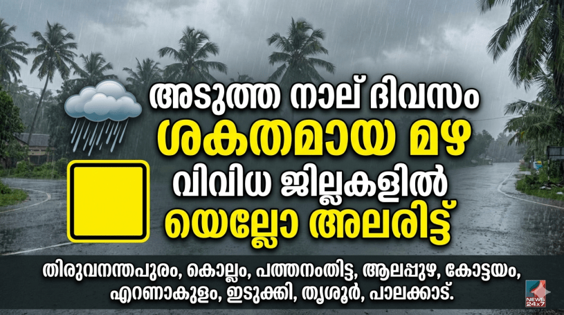 ശക്തമായ മഴ കണക്കിലെടുത്ത് വിവിധ ജില്ലകളില് യെല്ലോ അലര്ട്ട് പ്രഖ്യാപിച്ചു.